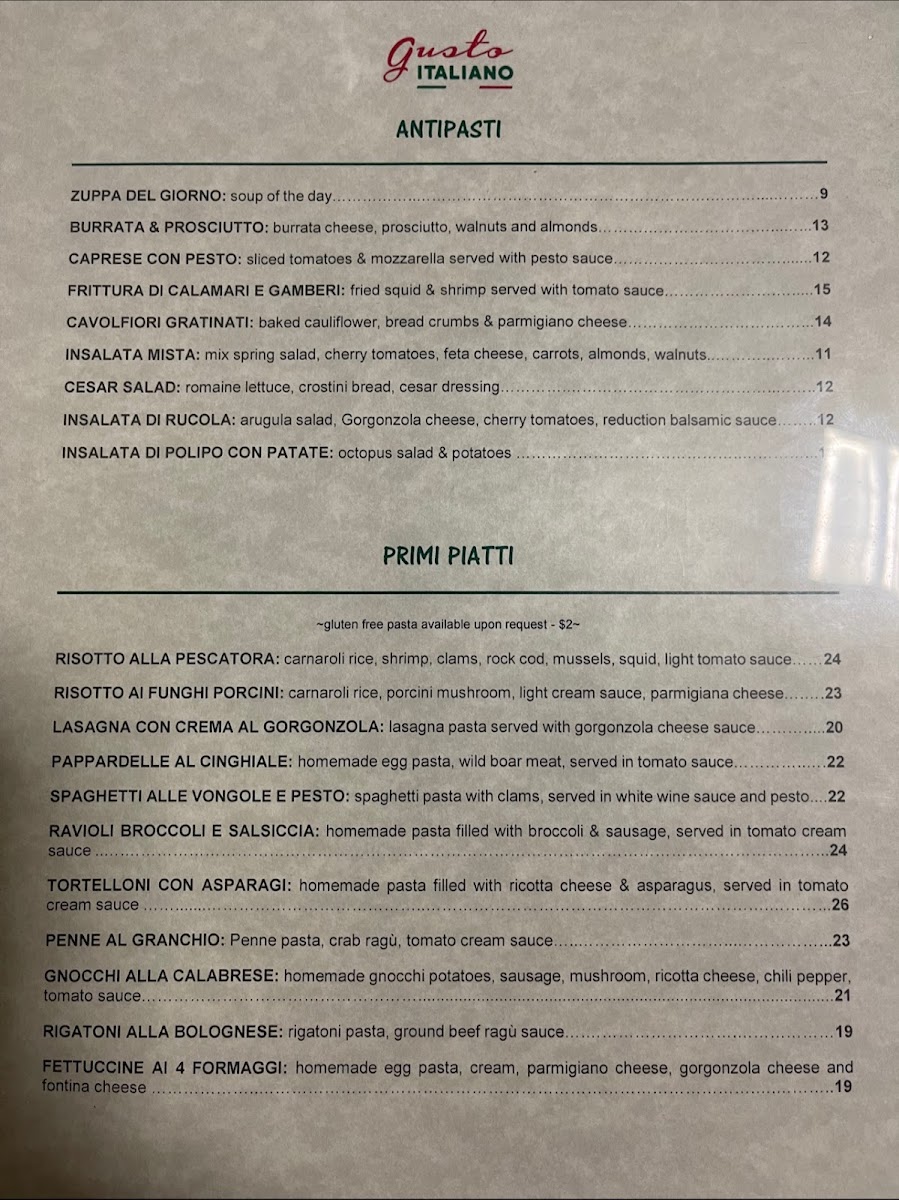 Welcome to Gusto Italiano, where authentic Italian cuisine comes to life in the heart of Modesto, California. Located at 3948 Sylvan Ave Suite #307, this charming eatery invites you to indulge in a culinary experience that celebrates rich flavors and fresh ingredients.
